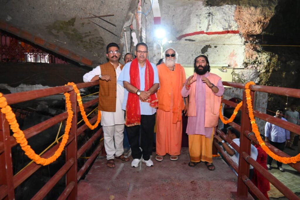 टपकेश्वर मंदिर में रिकॉर्ड समय के भीतर तैयार किए गए नव निर्मित पुल का विधिवत उद्घाटन करते कैबिनेट मंत्री गणेश जोशी।