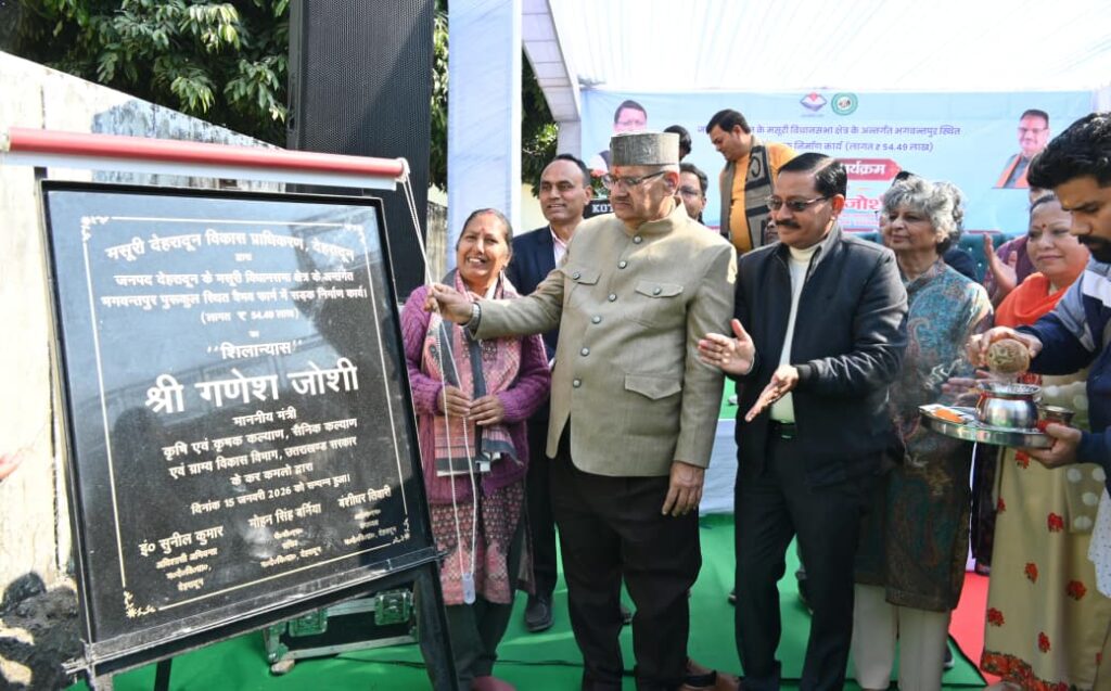 कैबिनेट मंत्री गणेश जोशी ने जनपद देहरादून के मसूरी विधानसभा क्षेत्र के अंतर्गत भगवन्तपुर स्थित वैभव फार्म में रुपये 54.49 लाख की लागत से आंतरिक सड़क निर्माण कार्यों का विधिवत शिलान्यास किया।