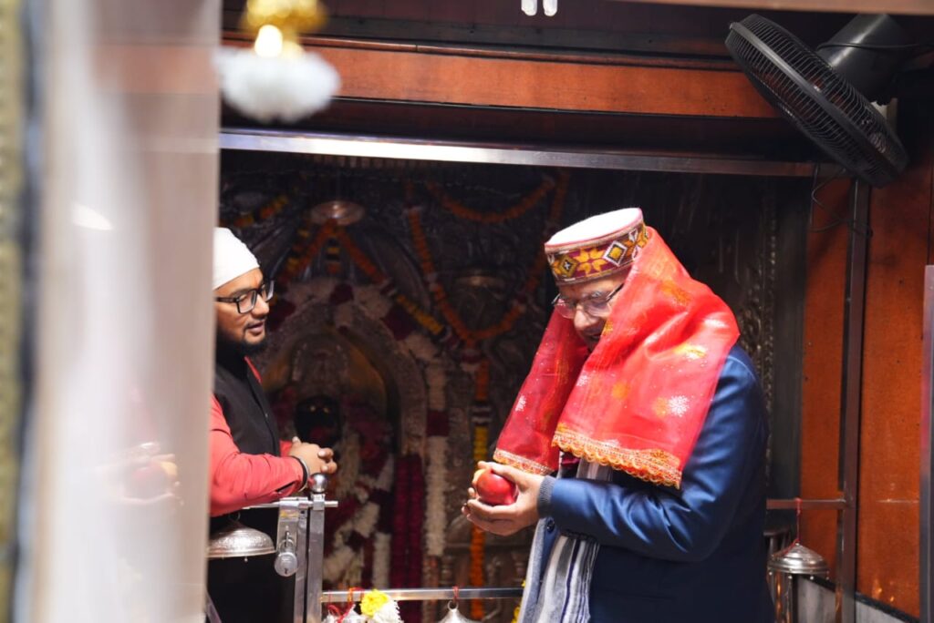 डाट काली मंदिर में मां काली के दर्शन कर मां काली का आशीर्वाद लेते कैबिनेट मंत्री गणेश जोशी