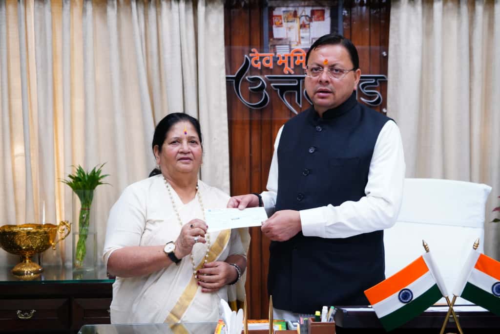 प्रसिद्ध पर्वतारोही एवं पद्मभूषण सम्मान प्राप्त बछेंद्री पाल ने शनिवार को मुख्यमंत्री राहत कोष के लिए 10 लाख रुपए का चेक प्रदान किया। यह चेक उनकी ओर से राज्य महिला उद्यमिता परिषद की उपाध्यक्ष श्रीमती विनोद उनियाल द्वारा मुख्यमंत्री को सौंपा गया।